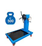 Оснащен редуктором для быстрого вращения одной рукой. П-образная рама. 4 поворотных колеса обеспечивают маневренность и устойчивость к перевороту. С 4-мя регулируемыми кронштейнами для удобства вывешивания и обслуживания ДВС легковых и легких грузовиков. Можно установить кантователь вплотную к моторному отсеку автомобиля. г/п: 907 кг.