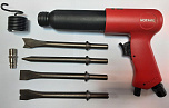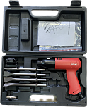 Пневмозубило с набором зубил 4шт удлиненное. Ход поршня 92мм. Частота ударов 2200уд/мин. Рекомендуется для резки металла толщиной до 2мм, для кузовных и шиномонтажных работ, удаления клёпок, срезки болтов, гвоздей и т.п. Также рекомендуется для отбойных и демонтажных работ по бетону.