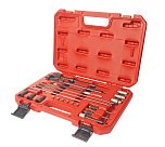 Набор для очистки посадочных мест форсунок дизельных автомобилей. В комплекте: - медные щетки: 18, 19, 21, 24, 26 х 2 шт. каждого размера; щетка для очистки: 9 х 100 мм.; 2 шт. - щетки: 300 мм. Х 2 шт.; 1 шт. - гибкий держатель; 1 шт. - адаптер щетки с держателем; 1 шт. - опорный элемент; 2 шт. - щетки металлические для очистки посадочных мест форсунок; 8 шт. - заглушки; 1 шт. - пластиковая втулка для щетки.