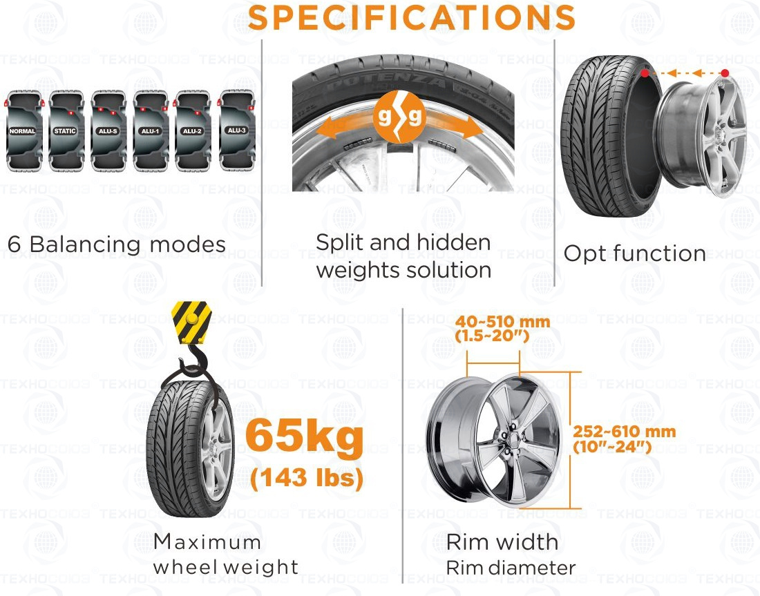 Максимальный вес колеса с диском – 65кг. C кожухом. Точность ±1гр. Напряжение 220В.