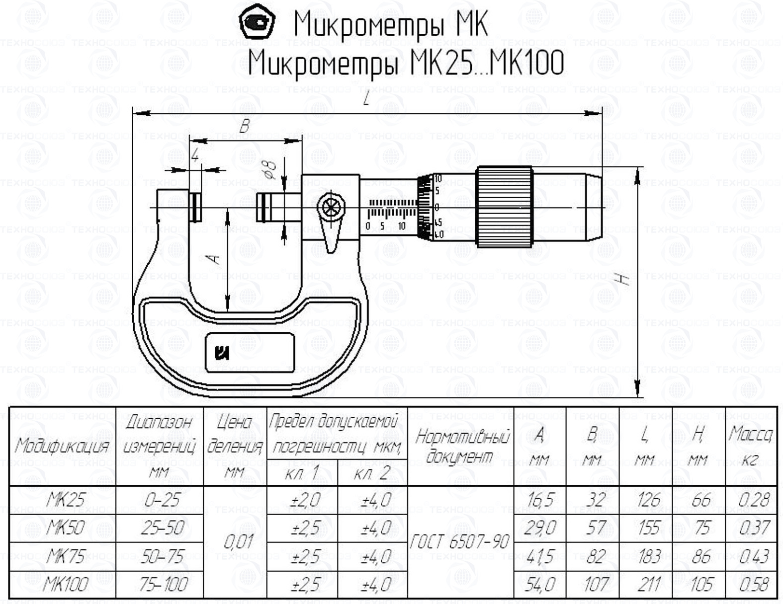 Цена деления 0,01 мм. Диапазон измерения от 50-75 мм. Для измерения наружных размеров изделий. Измерительные поверхности микрометра оснащены твердым сплавом. Микрометры укомплектованы одной установочной мерой. Класса точности 2. ГОСТ 6507-90. Поставляется в двух вариантах с поверкой и без поверки!